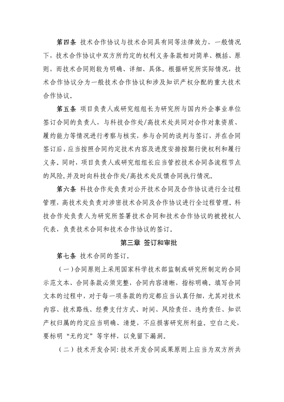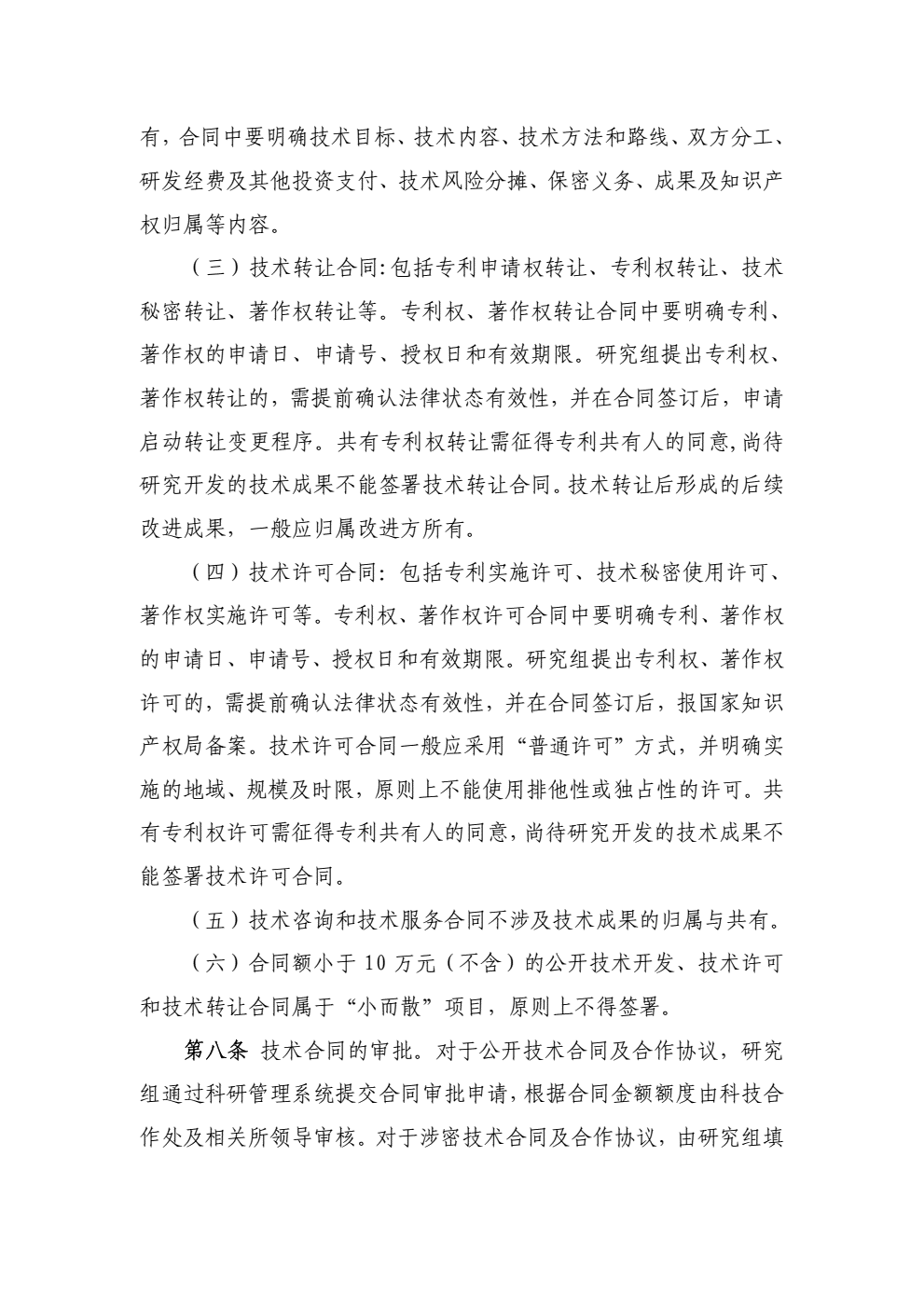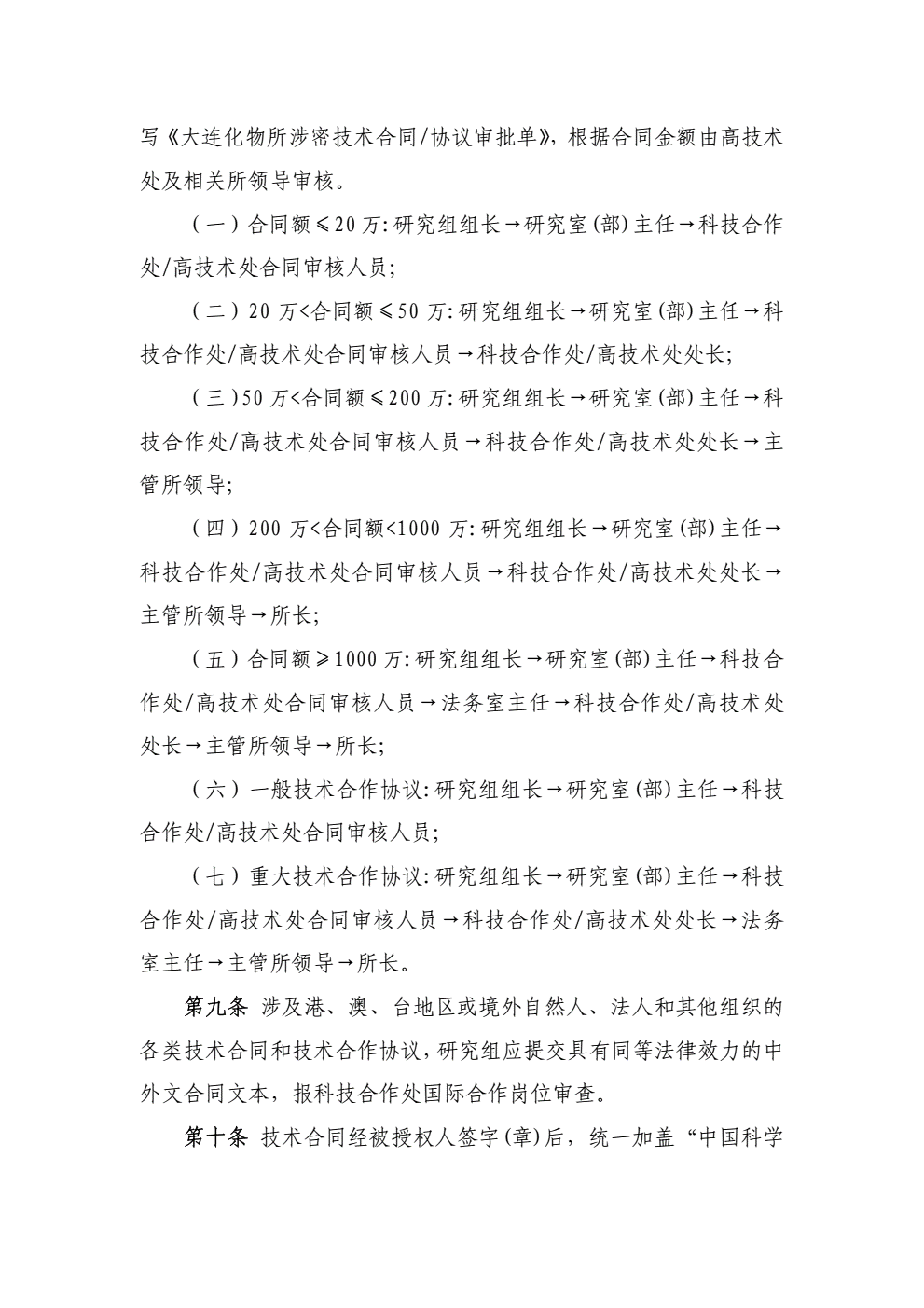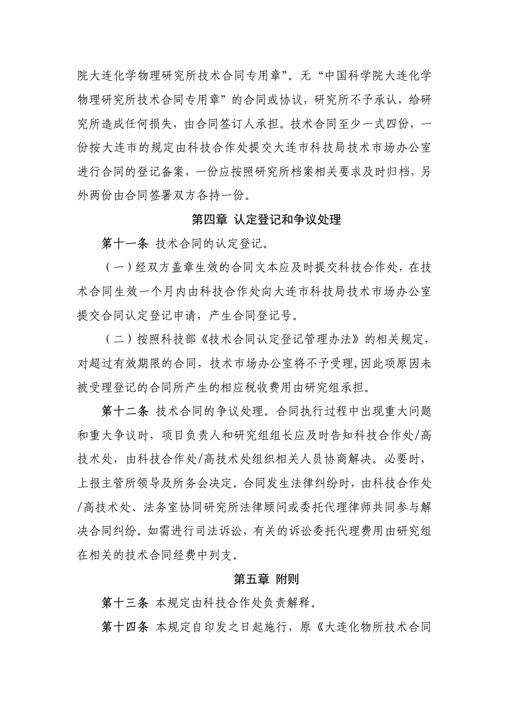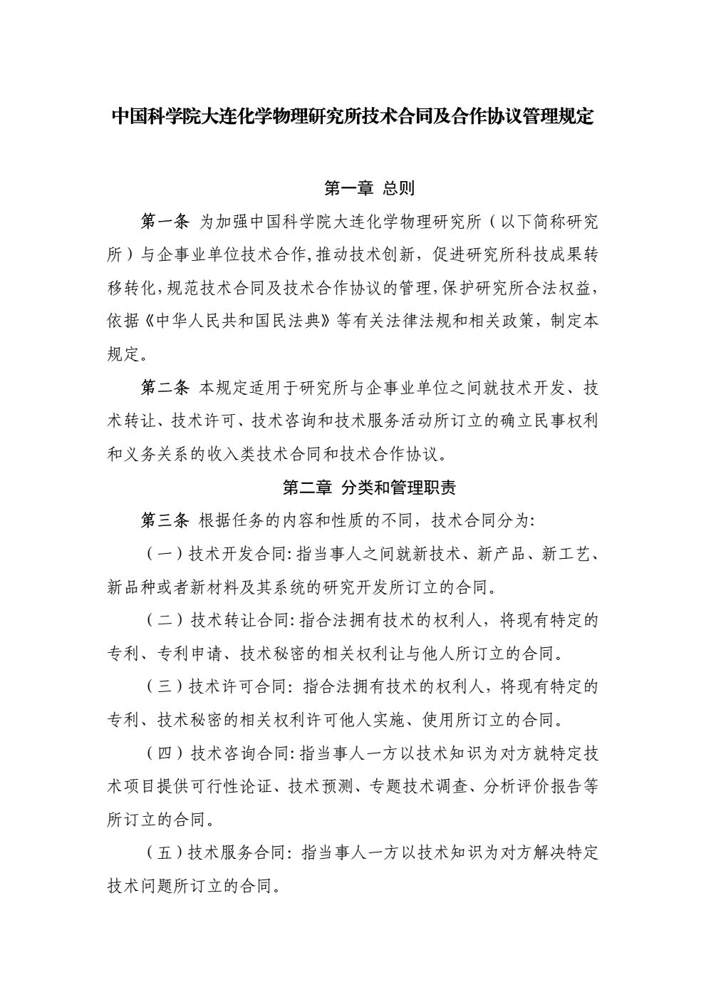 中国科学院大连化学物理研究所技术合同及合作协议管理规定